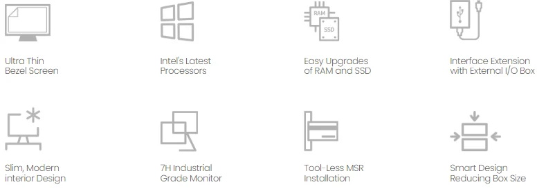 APEXA CORE is the next generation of APEXA. As APEXA CORE is equipped with the latest Intel® Core™ and Celeron® processors, it provides superior performance for the retail and hospitality industries. With its sophisticated sense in a modern and contemporary style, APEXA CORE offers fast and easy access to SSD and RAM for convenient upgrades, with plenty of I/O ports to accommodate many options.