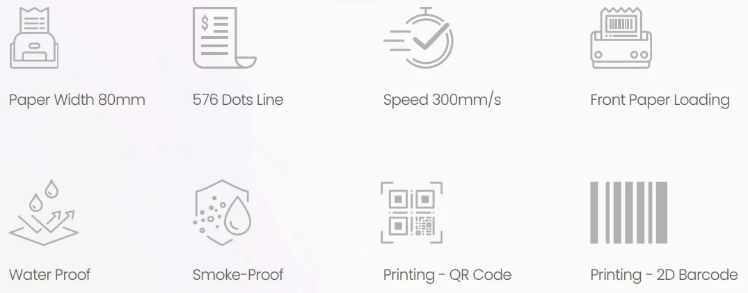 The QubePos D300M thermal receipt printer is a high-speed thermal receipt printer designed for repetitive tasks in limited operating time applications, especially for retail stores and fast-food applications. With the reliable printer module, it can print for prolonged durations while keeping the printing noise to a minimum. Along with a multi I/O Interface, D300M is the best choice for high-quality demand solutions.